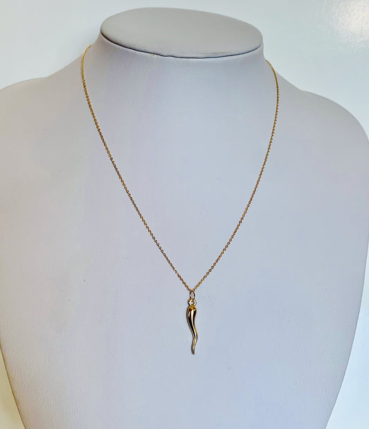 14K Gold 24mm Italian Horn Charm / Pendant - Corno 3D Cornicello Good Luck Devils Horn optional 14K Gold Cable Link Chain