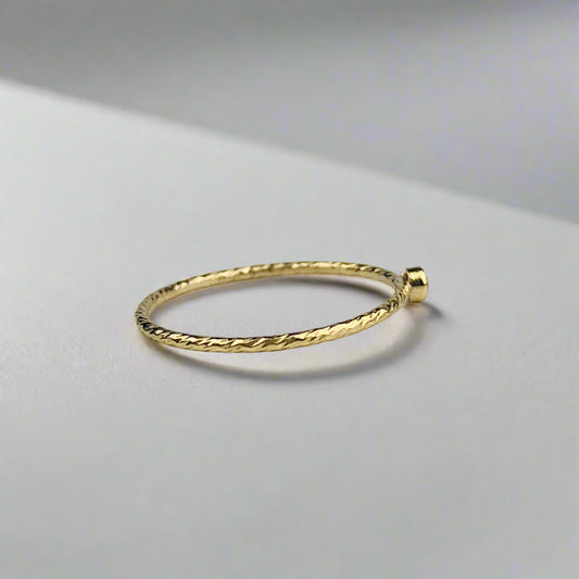 14K Gold Filled 0.9mm Stacking Ring / Stackable Ring with Bezel Set Cubic Zirconia and Etched Rope Design Band