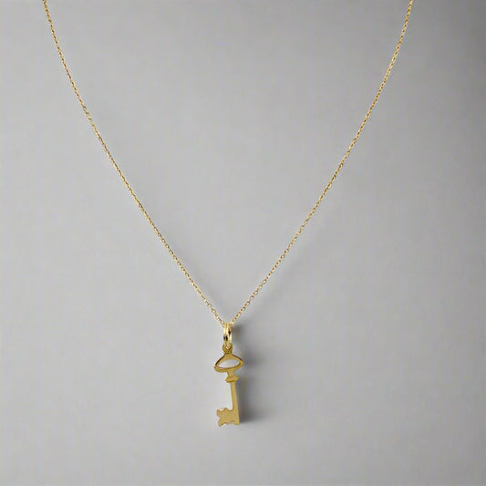 14K Gold 22mm Classic Key Charm / Pendant optional 14K Gold Cable Link Chain
