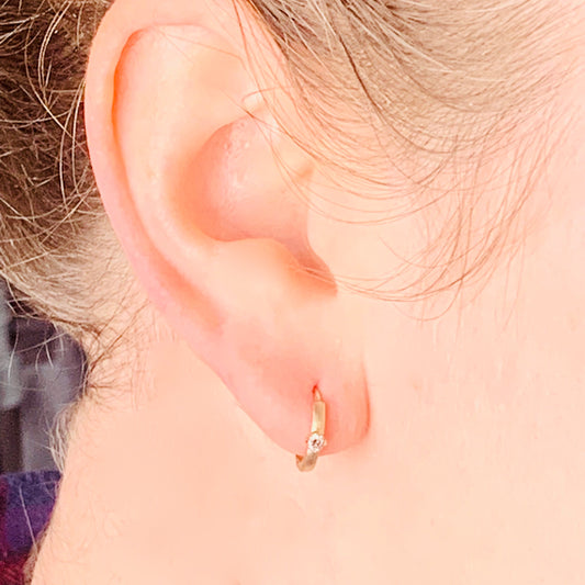 14K Brushed Gold / Satin Finish Diamond Hinged Hoop / Mini Huggies